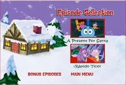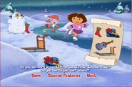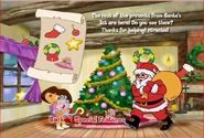 Dora's Christmas! (or simply known as just "Christmas!" according to the VHS) is a Dora the Explorer VHS tape featuring episodes from its 2nd season. The DVD version also features the same episodes with two bonus episodes that are also from its 2nd season. Description on the cover[]Snowflakes, sleigh bells, songs, Santa - it can all only mean one thing: it's Christmas! And preschoolers can celebrate this season with two holiday adventures (A Present for Santa and ¡Rápido, Tico!) from Dora the Explorer, the unique play-along adventure show from Nick Jr.! Episodes[]